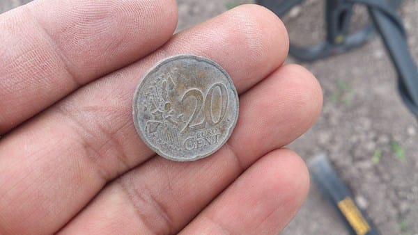 La moneda que muestras en la imagen tiene el valor de 20 céntimos de euro y no la conserves porque aunque pasen los años no tendría valor numismático, ya que se observa una mala conservación muy deteriorada y con golpes.