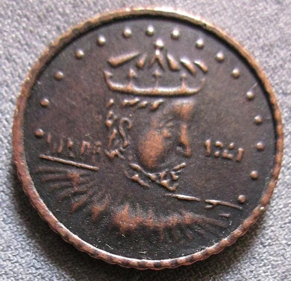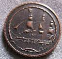 Quisiera obtener información a cerca de esta rara moneda o medalla conmemorativa en la que por una cara de la misma se puede apreciar en relieve la figura de un barco de vela con tres mástiles sin mas (aparentemente a la vista) y en la otra cara la figura de un personaje con corona, una fecha (1721-¿1741?) Y una inscripción indescifrable a la vista. Os dejo unas fotos de la misma. Gracias de antemano.