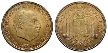 Hola tengo la moneda de 2.50 peseta del año 1953 ... Otra de1 peseta de la cara de Franco de 1944.... Otra de 0.50 CMS. 1949 ... Conocen algún coleccionista ? Gracias - maryfranquet