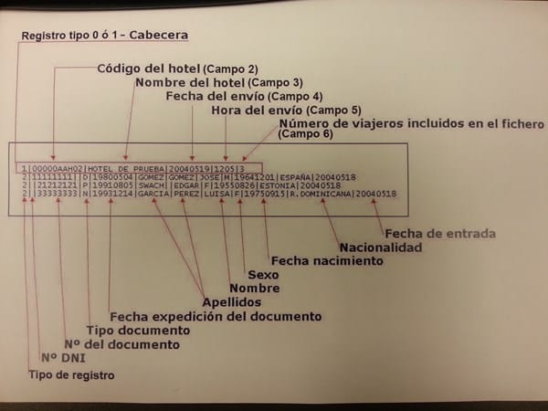 Los datos de la primera línea ( Registro, código de hotel/ nombre de hotel son fijos, fecha del envío y hora del envío no se como podría generarlos.