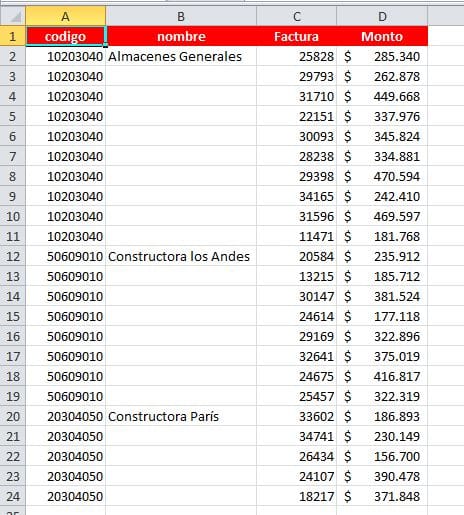 Me llega un informe, donde en la primera columna, ejemplo A, viene un código