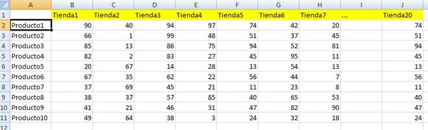 Tengo un lista de en excel, donde cada fila es un registro y contiene 20 datos numéricos por línea, uno dato en cada columna.
