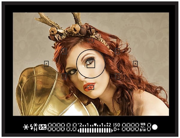 Un ejemplo muy gráfico es el de la fotografía de retrato, donde ya habréis escuchado que es aconsejable enfocar en los ojos de la modelo donde, curiosamente, encontraremos mayor contraste. Veamos un ejemplo en el que asumimos que vamos a realizar el enfoque con el punto central únicamente: