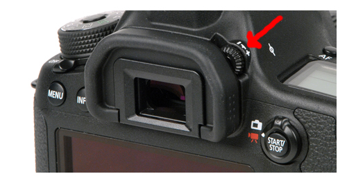 En la siguiente imagen podéis ver el aspecto de la rueda de ajuste dióptrico en una cámara Canon: