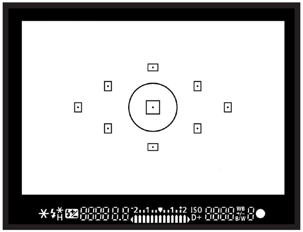 - Los puntos de enfoque de plano simple (single plane): suelen estar alrededor del punto central y su forma es RECTANGULAR, indicando claramente la orientación de los mismos.