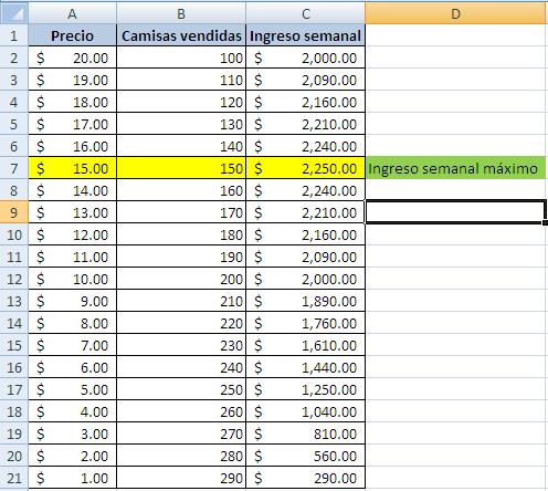 Cuando una tienda de departamentos puso un precio de $20 a cierta camisa, se vendieron, en promedio, 100 camisas semanales. Se observó que por cada disminución de $1 en el precio se vendían 10 camisas más por semana ¿Qué precio deben tener las camisas para obtener el ingreso semanal máximo?