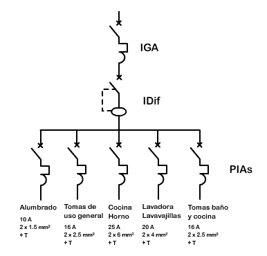 Por ejemplo tirar una línea general de 6mm y en la caja de distribución las salidas a cada enchufe que sean de 2.5mm.