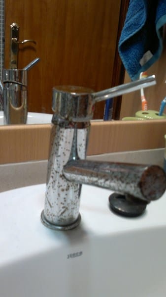Desde hace años tengo este problema con el grifo del lavamanos del baño. Se llena de motitas como si fuese oxido y estuviese picado y por mas que lo limpio no hay manera de que desaparezca. He probado a cambiar al grifo y al poco tiempo comienza de nuevo a salir este oxido en el nuevo grifo.