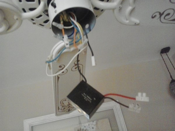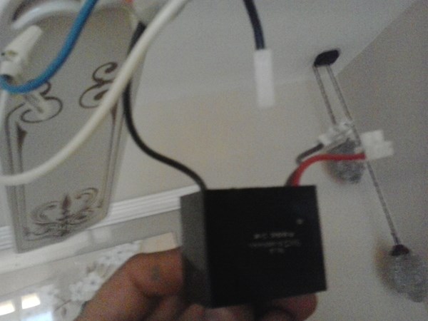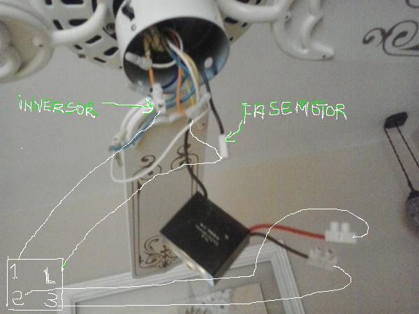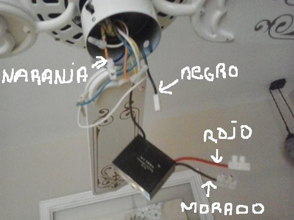 Tengo que reemplazar el interruptor de cadena de un ventilador de tres velocidades pero no se donde van los cables son 4 naranja, negro, morado y rojo, el morado y rojo salen de un estremo de una caja negra(condensador o algo así) el naranja viene del inversor de giro, el negro y naranja del motor