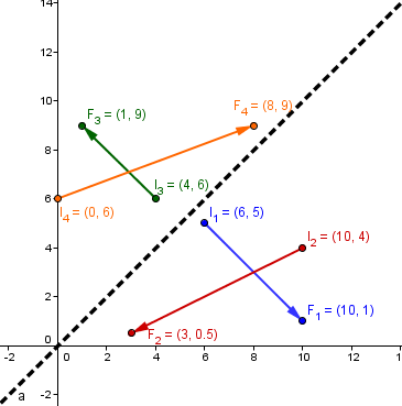 Para cada uno de los siguientes casos dibuja un segmento de línea en :
