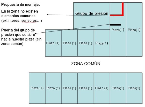 Ya por terminar, comentaros que esa pared latera de la que hablo es la pared que corresponde al grupo de presión de la comunidad cuya puerta abre hacia nuestra plaza de garaje (no existe paso de servidumbre). Levantando el trastero en ningún momento se impediría el acceso al grupo de presión, cosa que si ocurriría si tuviéramos que aparcar un coche al fondo de la plaza.