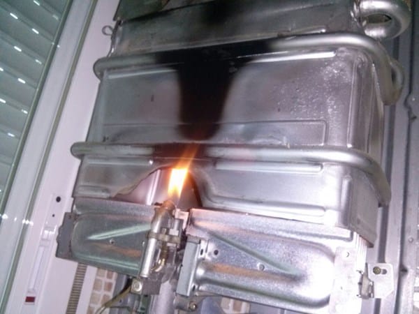 Desde hace mucho llevamos teniendo este problema con el calentador de casa. Esto provoca que nos vaya poniendo el techo negro y tener que pintar muy a menudo. Después de verificar que la salida de gases no está obstruida esta claro que el problema es que la llama no quema por donde debe.
