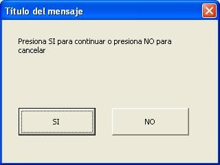 Label1.Caption = "Presiona SI para continuar o presiona NO para cancelar"
