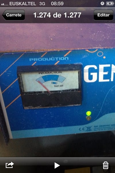 Mi clorador salino lleva unos días que a ratos está con la aguja de produccion a 0 y el piloto verde encendido ( como en la foto que adjunto) y a ratos con la aguja de producción en medio pero con el piloto naranja encendido. ¿Qué le pasa? ¿Cómo puedo solucionarlo?