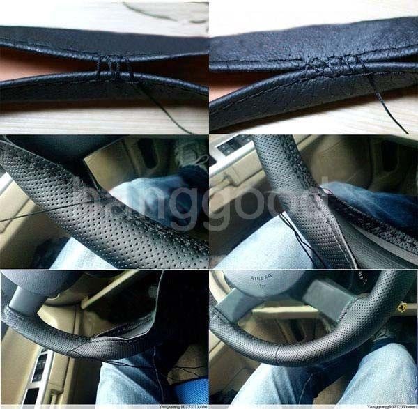 Para un volante como el del Skoda que tienes ; en general los fabricantes lo enmarcan dentro del tamaño medio y para en concreto 370-380 mm una medida usual es 106X10, 5 cm. ( Largo de la tira por anchura de la tira a coser ).