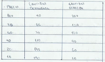 Hola, bueno en el ejercicio me pedía graficar la curva de oferta y demanda de acuerdo a la siguiente tabla: