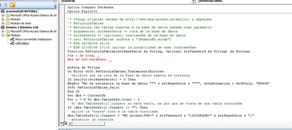 Function ReVinculaTablas(strBaseDatos As String, Optional strPassword As String) As Boolean