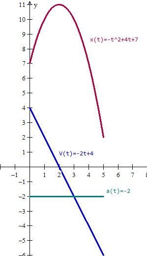 x(t) = (1/2)(-2)t^2 + 4t + 7