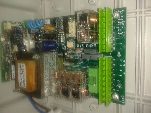 ¿Cómo puedo poner un pulsador para abrir la puerta del parking e mirada la placa y no se donde se conecta?