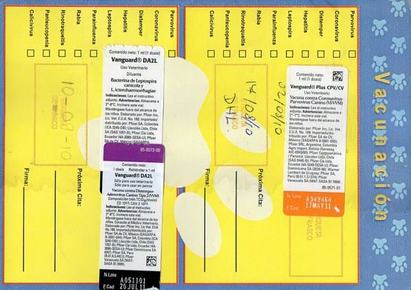 Mi perro es de raza Sharpei, su nombre es Fuñol, tiene 4 años de edad, y esta vacunado como verán en la imagen, pasa que en los últimos 4 meses mi perro ha ido decayendo pocoen el peso, se le notan las costillas y la columna vertebral, cosa que no era comú a inicios de año, estoy muy preocupado y necesito ayuda. También desde inicio de año se le pegaron las garrapatas en un parque y estuvo con ese problema hasta hace ya unas semanas, compramos algunos remedios que servían para echarle en gotas a su cuerpo y paso un accidente hace algunos días que por casualidad cayo una gota en su comida. Miren estoy muy preocupado, él pasa el día en el techo y duerme abajo pero no en mi casa. Les agradezco que me respondan lo quiero mucho a mi perro y la verdad nunca estuve tan desesperado como hoy, trato de mantener la calma, espero su ayuda. GRACIAS. 22/09/2014