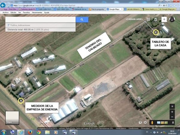 Sección del cable para alimentar una casa a 460mt del medidor de la empresa de energía