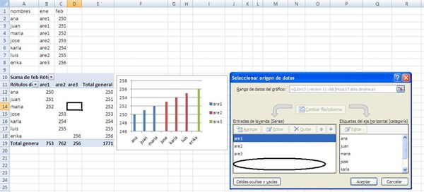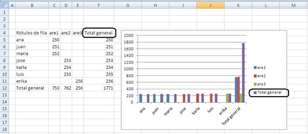 Tengo una tabla dinámica y he creado un gráfico dinámico a partir de esta información. El tema es que en el gráfico dinámico no aparece la última columna (total general) que por defecto calcula la tabla dinámica.