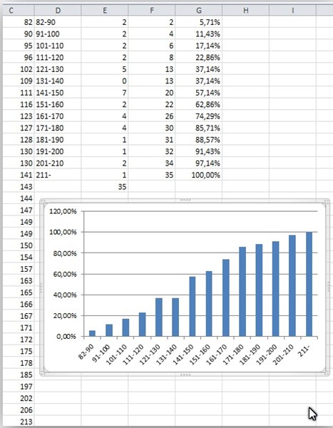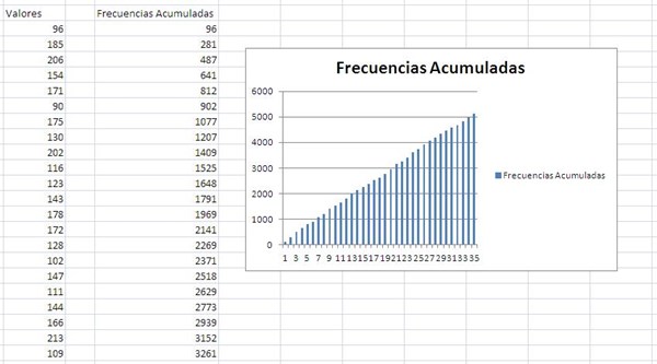 2) Trazar un histograma de frecuencias acumuladas