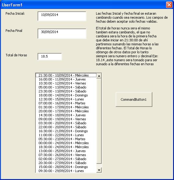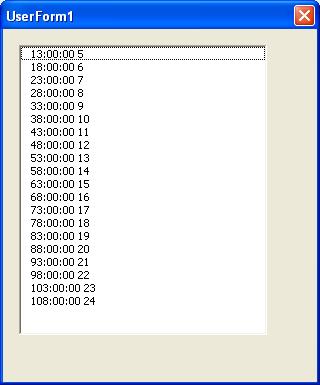 18:00:00"espacio"6 y al siguiente item igualmente se le sumen 5 horas asta que se termine el ciclo que debe de ser asta que llegue a 20. En VB 6