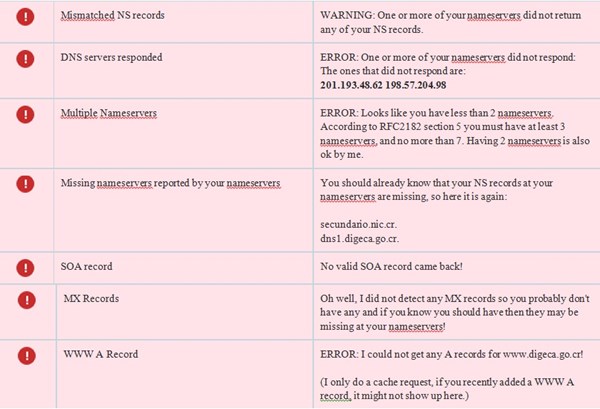 WWW WWW A RecordERROR: I could not get any A records for www.digeca.go.cr!
