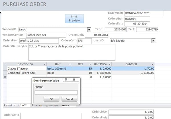 Tengo un formulario que contiene un subformulario. Es un formulario de Pedido, Necesito imprimir ese formulario con su subformulario: