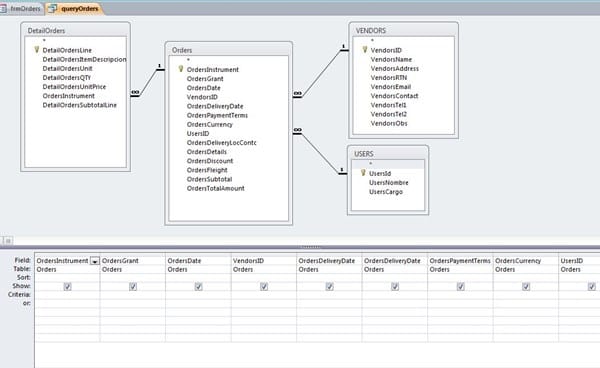 Las Tablas están relacionadas. He creado una Consulta donde listo todos lo campos del formulario y subformulario, luego he creado un Reporte con Encabezado, detalle y pie de página. El Record Source del reporte "rptOrders" es la consulta.