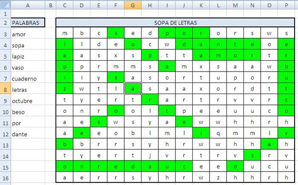 Te anexo la macro para resolver la SOPA DE LETRAS.