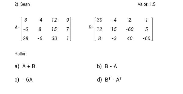 Este es el más complicado, tenemos que transponer las dos matrices y luego restarlas