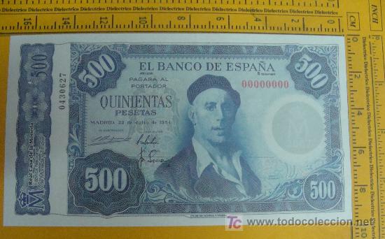 Tengo un billete de 500 pesetas del 1954 pero es más largó que los que he visto por internet la serie pone 00000000 y en un lateral 0702309 tiene algún valor?