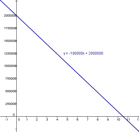 Un fabricante compra maquinaria por un valor de $2000000 que se deprecia linealmente hasta que su valor es de $100000 después de 10 años.