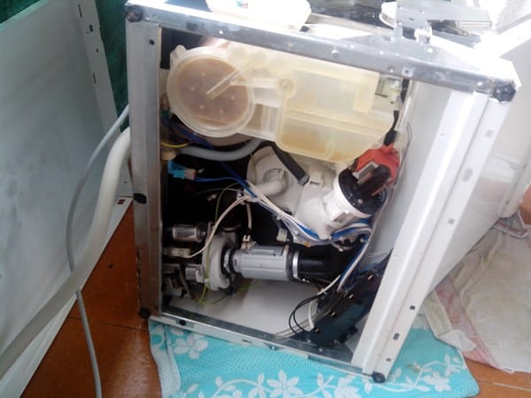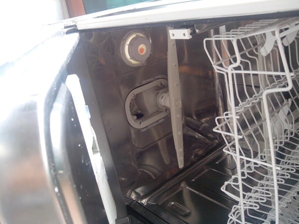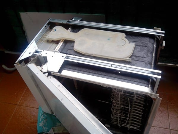 Al volcarle he visto una pieza blanca, tipo retén, suelta en el fondo y además, parte de esa pieza en el filtro que lleva dentro. No sé como ha llegado ese trozo ahí si el retén estaba en el fondo del lavavajillas por fuera.