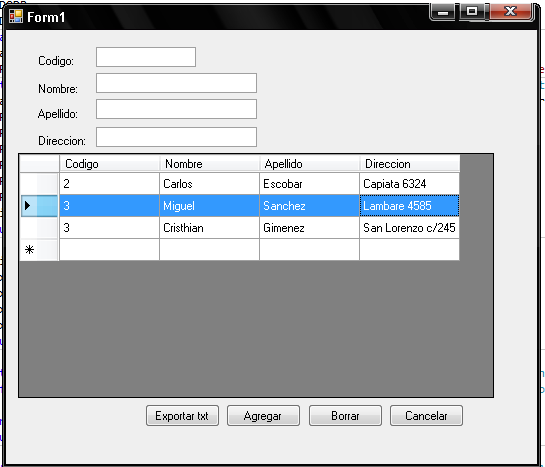La pregunta es, al salirme muchas opciones al realizar el filtro ej: textbox : ma, y me aparecen MARIO, MARÍA, MARCIO, MARIEL, lo que quiero es seleccionar uno de esos registros y con un botón borrar eliminar los registros de esa fila.