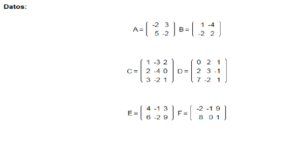 Utilizando los datos anteriores, determina la dimensión y transpuesta de cada una de las matrices.