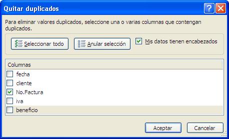 tengo una hoja de excel en el que varias columnas tienen información de facturas, el problema es que muchas filas tienen el mismo número de factura