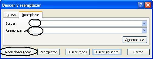 Como susttuir espacios en blanco de nombres completos en Excel