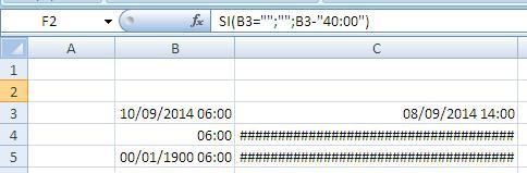 Necesito que esta formula... =SI(B3="";"";B3-40) en vez de contar numero simple 40 cuente horas el numero 40, serian 40:00 horas. No se si se puede hacer.
