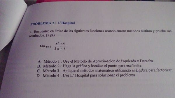d. Metodo 4; use L' HOSPITAL para solucionar el problema