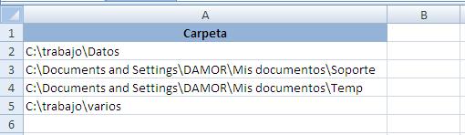 Entonces podrías poner el nombre de las carpetas en una lista de excel. Por ejemplo: