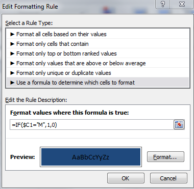 tengo un formato en donde la columna C es contiene el sexo del alumno H para hombres es color azul y M para mujeres es color rojo, en la columna E esta la edad 11,12,13,12. QUIERO QUE la edad me salga del mismo color del sexo sin que tenga que hacerlo de uno por uno, se puede eso????