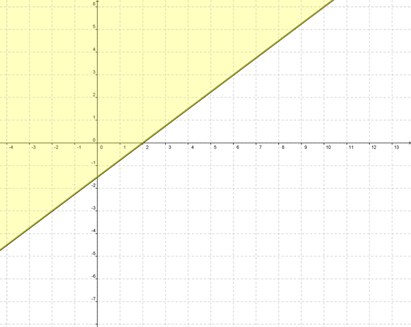 3º Sustituyes en la inecuación inicial, un punto cualquiera de uno de los semiplanos en que la recta ha divido el plano