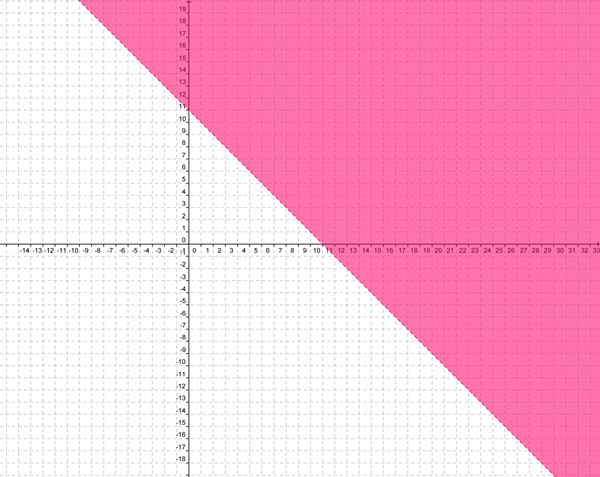 Nota: Cuando la inequación incluye el igual, en este caso menor igual, en la solución la recta frontera se dibuja continua ya que los puntos de la recta también son solución.