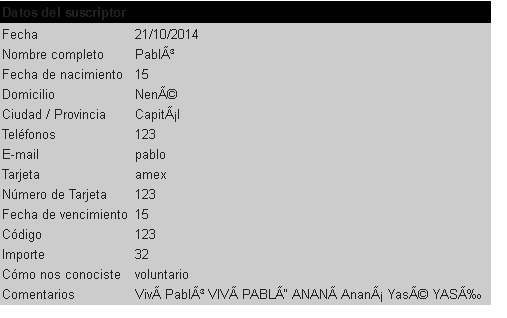 El referido php envía un mail con el contenido de los formularios. Cada línea que envía el php por mail tiene esta forma: