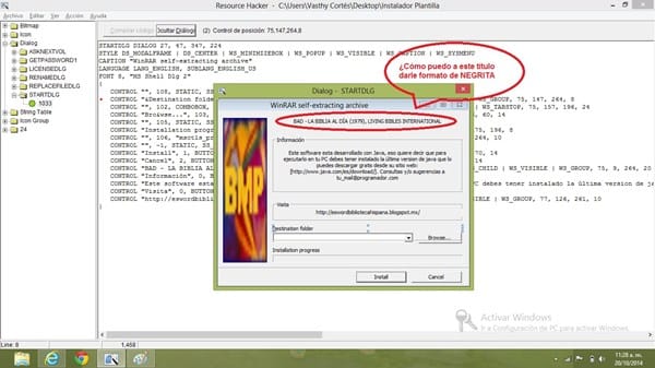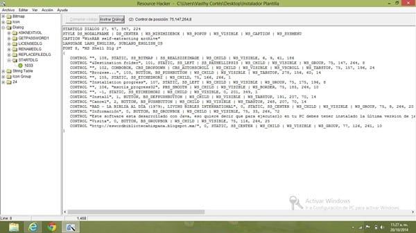 Estoy creando un archivo de instalación (un instalador o un ejecutable ".exe") en un programa llamado "Resource Hacker".