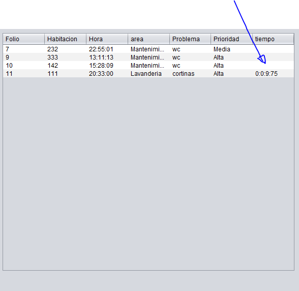 Hola, tengo un proyecto en netbeans que se trata de Levantamiento de reportes o fallas en mantenimiento. Se guarda en la B.Datos con Mysql . Se cargan en un Jtable. Como puedo ingresar un tipo cronometro que este corriendo en el renglón y la columna del jtable. Al crear el reporte o falla en la Bd.