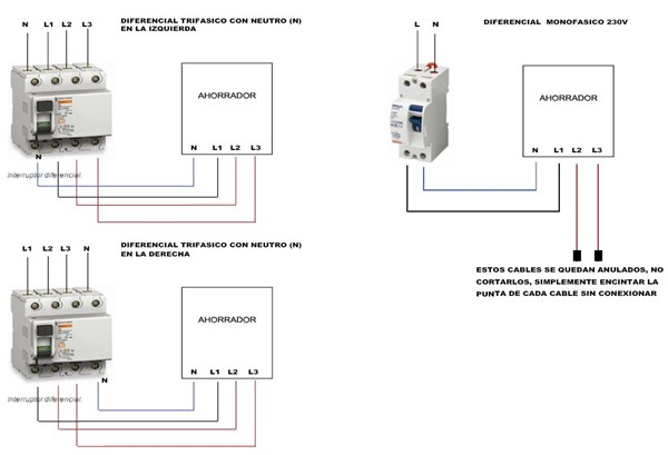 Como puedes ver al diferencial trifásico entra un neutro y 3 fases y la tierra es independiente